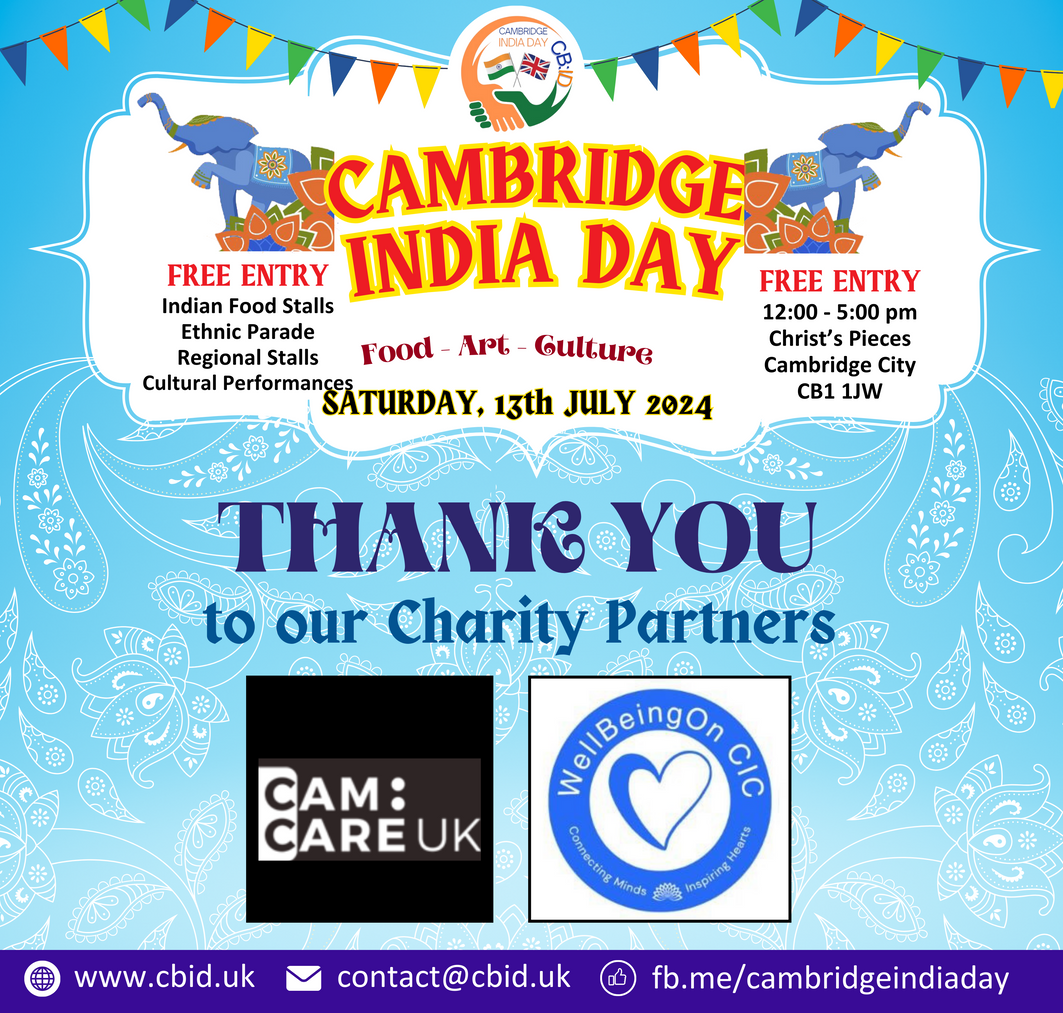 Cambridge India Day (CB:ID) is the first of its kind event being held in the heart of Cambridgeshire to celebrate the rich vibrant Indian culture, heritage and diversity in United Kingdom, through various group performances, a vibrant parade besides other stalls, presentations and activities.